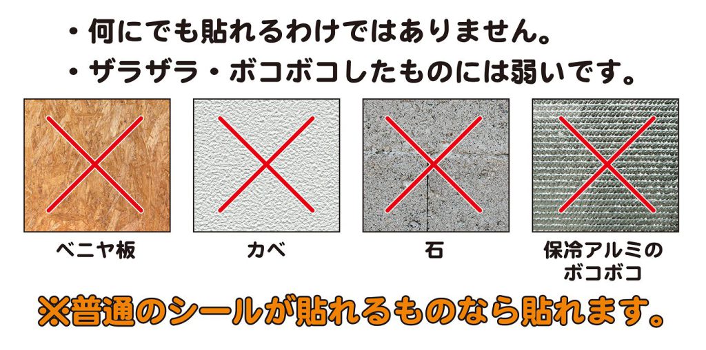シールは屋内用です。野外や水に濡れると剥がれます。